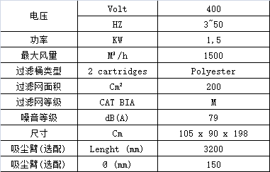 •2個(gè)聚酯纖維盒式過濾桶,面積為20m2 (2x10m2)