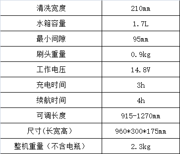 GTC-210B 經過人體工學考量,具備伸縮手柄及可調刷頭角度設計。大容量鋰電保證續航時間長達4 小時。刷頭為難以到達的區域,如邊角、縫隙而設計。只須把刷頭安裝到卡槽上便可開展工作,靈活更換。