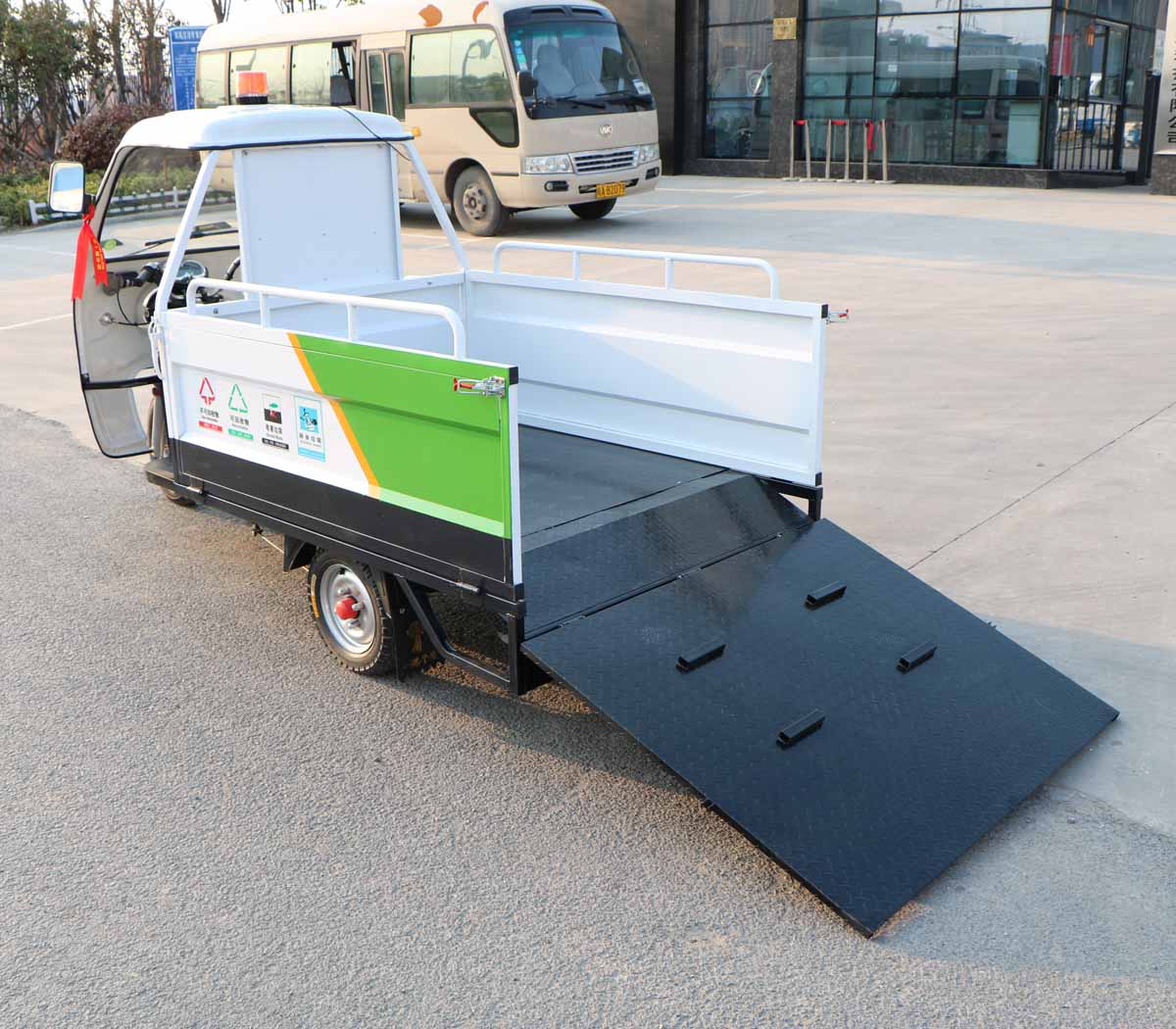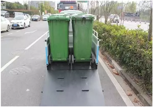 3、適用于短途駁運(yùn)垃圾桶,可裝載4個(gè)240L標(biāo)準(zhǔn)垃圾桶;裝卸方便,集垃圾收集、存儲(chǔ)、清運(yùn)于一體,有效提高作業(yè)效率;